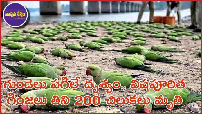 వాస్తవ నేస్తం,వెబ్ డెస్క్: మధ్యప్రదేశ్ రాష్ట్రంలోని ఖర్గోన్ జిల్లాలో నర్మదా నది తీరంలో జరిగిన ఘటన పక్షి ప్రేమికుల హృదయాలను కలచివేసింది. చూడ ముచ్చటైన చిలుకలు ఒక్కసారిగా విగతజీవులుగా మారాయి. ఒకటి కాదు రెండు కాదు… ఏకంగా 200కు పైగా చిలుకలు విషపూరిత ఆహారం కారణంగా ప్రాణాలు కోల్పోయాయి. ఈ దృశ్యం అక్కడున్న వారిని తీవ్రంగా కలచివేసింది.