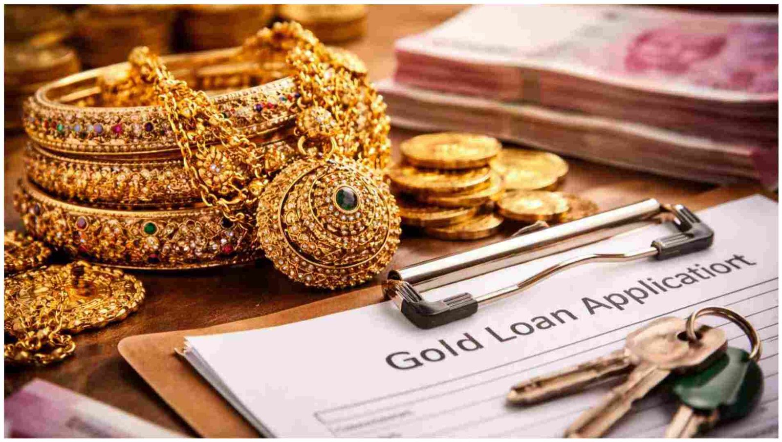 Gold jewellery and Indian currency representing gold loan repayment and new RBI rules for borrowers
