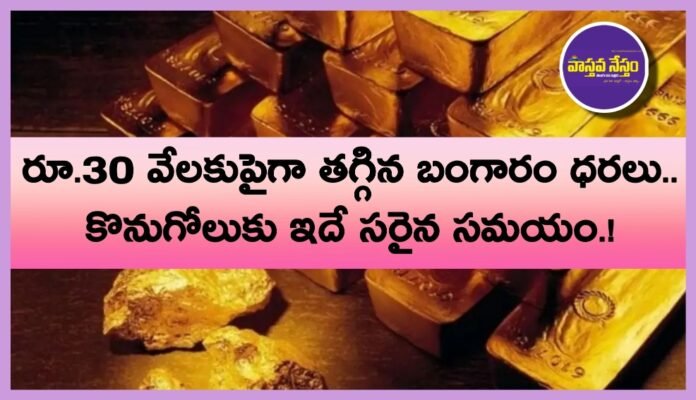 ఈ ఏడాది అంతా పరుగులు పెట్టించిన బంగారం ధరలు ఏడాది చివర్లో ఒక్కసారిగా కుప్పకూలాయి. డిసెంబర్ నెలలో నింగిని తాకిన పసిడి ధరలు ఇప్పుడు భారీగా తగ్గి సామాన్యులకు కొంత ఊరటనిస్తున్నాయి. రూ.30 వేలకుపైగా తగ్గడంతో బంగారం కొనాలనుకునే వారికి ఇది మంచి అవకాశం అని మార్కెట్ వర్గాలు చెబుతున్నాయి.