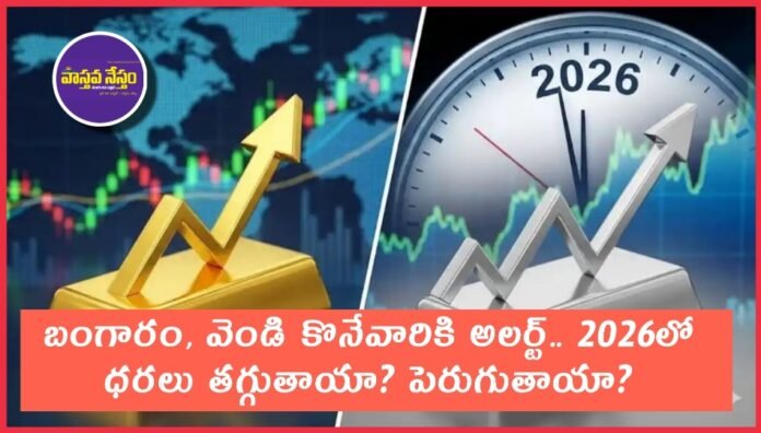 2026లో బంగారం, వెండి ధరలు పూర్తిగా పడిపోతాయన్న అంచనాలకు ప్రస్తుతం ఆధారాలు లేవు. ప్రపంచ ఆర్థిక పరిస్థితులు, వడ్డీ రేట్ల కోతలు, భౌగోళిక ఉద్రిక్తతలు కొనసాగితే