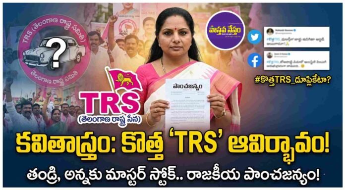 మాజీ ఎమ్మెల్సీ కల్వకుంట్ల కవిత తన సొంత రాజకీయ పార్టీని ప్రకటించి రాష్ట్ర రాజకీయాల్లో పెను సంచలనం సృష్టించారు. ఏవేవో పార్టీ పేర్లు ప్రచారంలోకి వచ్చినా, ఎవరి అంచనాలకు అందని విధంగా తన పార్టీకి “టీఆర్ఎస్” (తెలంగాణ రాష్ట్ర సేన – TRS) అని నామకరణం చేసి అందరినీ ఆశ్చర్యపరిచారు.