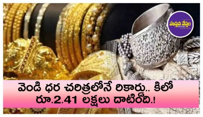 వాస్తవ నేస్తం,న్యూఢిల్లీ :దేశీయబులియన్ మార్కెట్లో బంగారం, వెండి ధరలు మరోసారి సంచలన స్థాయికి చేరాయి. శుక్రవారం ఒక్కరోజులోనే వెండి ధర కిలోకు రూ.4,000 పెరిగి ఢిల్లీలో రూ.2,41,400కు చేరింది. ఇది ఇప్పటివరకు నమోదైన అత్యధిక స్థాయి కావడం గమనార్హం.