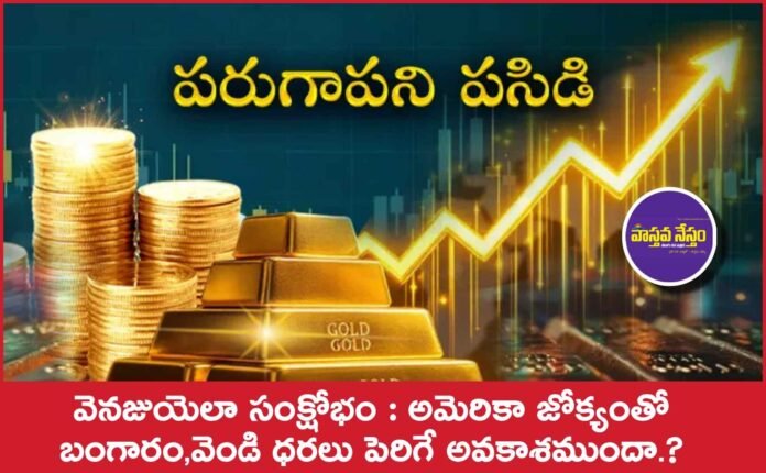వాస్తవ నేస్తం,వెబ్ డెస్క్: వెనజుయెలాలో చోటుచేసుకుంటున్న తాజా రాజకీయ పరిణామాలు ప్రపంచ ఆర్థిక మార్కెట్లపై ప్రభావం చూపుతున్నాయి. అమెరికా జోక్యం, అధ్యక్షుడు నికోలాస్ మడురో అధికారాల నుంచి తప్పుకోవడం వంటి వార్తలతో అంతర్జాతీయంగా అనిశ్చితి పెరిగింది. ఈ నేపథ్యంలో పెట్టుబడిదారుల దృష్టి బంగారం, వెండి వంటి విలువైన లోహాలపై కేంద్రీకృతమవుతోంది.